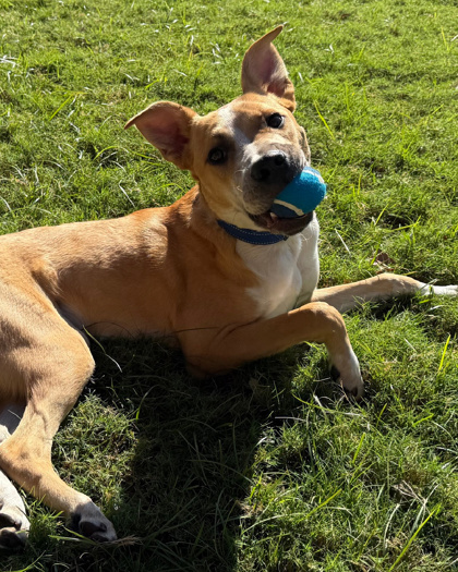 I'm Chess and I'm here to tell you that there is no sweeter pup than me. I'm about 20 pounds, one year old and super cute. I like toys, nylabones and playing with other dogs. At first I had no idea what a leash or harness was but after some practice, I'm excited now to go for walks every morning. I make a great little office assistant if you work from home and I sleep quietly through the night. I learned the doggie door pretty quickly and that helped a lot with my house training. I'm pretty much a total puppy package and hope you will consider adding me to your family.