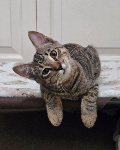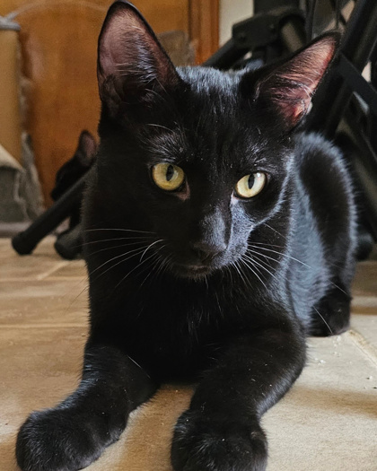 Meet Shadow - A Dash of Energy and a Whole Lot of Heart!Shadow is a sleek, black short-haired kitten with bright eyes and a big personality. At only 6 months old,he's a playful, energetic ball of curiosity who brings a spark of joy wherever he goes. Whether he's chasing a stuffed mouse across the floor or leaping after a wand toy, Shadow is always on themove-and always ready for his next adventure.While he may be shy when first meeting new people, don't let that fool you-once he feels safe, his silly, spirited side shines through. He'll be zipping through the room one moment, then stretched outin a sunbeam the next, purring softly as he watches the world go by.Shadow gets along wonderfully with other cats and would love a feline friend to wrestle and nap with. He hasn't been around children yet, but with slow, careful introductions, he could do well in a quiet, cat-savvy home.He's healthy, neutered, and more than ready to find his forever family. If you're looking for a kitten who will grow into your best friend-a little shy, a little wild, with a whole lot of love to give -Shadow might be just the kitten you're looking for.Adopt Shadow and let your home shine a little brighter.