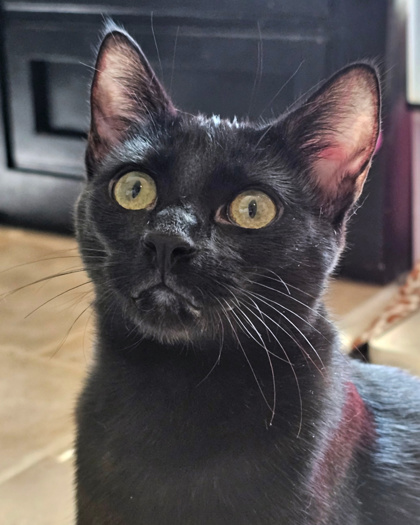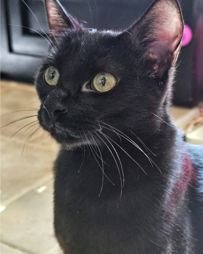 Meet Inky - Your Future Buddy and Sidekick!Inky is a sleek, short-haired black kitten with a heart full of curiosity and a soft spot for sunny windows. He's the perfect mix of playful and observant-always ready tochase a stuffed mouse or pounce on a wand toy, but also content to quietly watch the world go by from a cozy perch.Though a little shy at first, Inky warms up with little patience and play. Once he feels safe, you'll find him following you around like a little sidekick-especially if you're working at a computer (he loves curling up next to keyboards).Inky gets along wonderfully with other cats and would thrive in a home with a feline friend to help boost his confidence. He hasn't met children yet, but with gentle introductions, he could be a great companion in a calm household.If you're looking for a gentle, playful buddy who will grow into your best friend, Inky is ready to meet you. Let this little house panther charm his way into your heart (and maybe onto your desk) Adopt Inky and make room on your windowsill and keyboard for a little extra love!