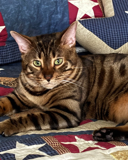 Meet Kido - A Stunning Bengal with a Big Heart (and Big Personality!) Kido is a beautiful, intelligent, and very active Bengal boy looking for a special forever home. After losing his previous owner, Kido was surrendered to a shelter which was a heartbreaking and scary experience for him. Thankfully, H4P stepped in to rescue him, and now he's safe and has learned to trust again in his foster home. Kido is a classic Bengal: vocal, curious, playful, and full of energy. He's not a lap cat, and he doesn't enjoy being picked up or cuddled but he does love spending time nearby, playing with toys, and showing off his athletic moves. He's happy to be admired from a respectful distance. Think of him as a work of art: beautiful, rare, and best appreciated on his terms! Here's what Kido needs in his forever home: A Younger Cat Friend: Kido must have a playful kitten or younger cat companion. He relies on other cats to feel confident and happy, and he loves having a buddy to run, wrestle, and snuggle with. No Dogs or Small Children: Loud noises and unpredictable energy stress Kido out. He needs a calm, quiet home without dogs or young kids. Special Diet: Kido is on a special food regimen to keep him feeling his best. His health is well-managed; he just needs someone who's happy to keep up with his dietary needs. A Patient, Understanding Human: Kido is shy and needs someone who will give him time and space to settle in. He may never be a cuddler, but he bonds deeply in his own way especially when other cats are around to help him feel secure. Kido has a unique spirit, and for the right person, he'll bring endless love and joy as a truly special companion If you have a cat who needs a buddy, a quiet home, and a big heart ready to accept a Bengal boy just as he is, Kido could be your perfect match. Apply to adopt Kido today and help him write the next chapter of his journey, one filled with love, play, and feline friendship.