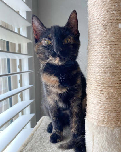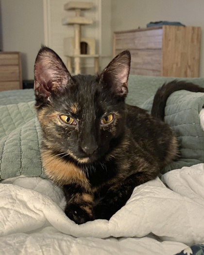 Meet Lyndie, your future snuggle buddy! This little girl is full of affection. While she loves playtime, she equally loves cuddling! She adores her foster parents and loves being close, whether that's being held, sitting on their laps, or sleeping next to them at night. She's very gentle and will melt your heart with those irresistibly sweet eyes.Lyndie currently shares her home with another foster kitten, adult cats, and a senior dog, and she gets along well with them all. She's naturally a bit shy and accustomed to a quieter home, but with a little patience and love, we think she can adjust to a livelier household.This precious girl is ready to meet her forever family and become your best friend. Could that be you?