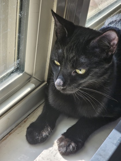 Meet Shadow - A Dash of Energy and a Whole Lot of Heart!Shadow is a sleek, black short-haired kitten with bright eyes and a big personality. At only 6 months old,he's a playful, energetic ball of curiosity who brings a spark of joy wherever he goes. Whether he's chasing a stuffed mouse across the floor or leaping after a wand toy, Shadow is always on themove-and always ready for his next adventure.While he may be shy when first meeting new people, don't let that fool you-once he feels safe, his silly, spirited side shines through. He'll be zipping through the room one moment, then stretched outin a sunbeam the next, purring softly as he watches the world go by.Shadow gets along wonderfully with other cats and would love a feline friend to wrestle and nap with. He hasn't been around children yet, but with slow, careful introductions, he could do well in a quiet, cat-savvy home.He's healthy, neutered, and more than ready to find his forever family. If you're looking for a kitten who will grow into your best friend-a little shy, a little wild, with a whole lot of love to give -Shadow might be just the kitten you're looking for.Adopt Shadow and let your home shine a little brighter.