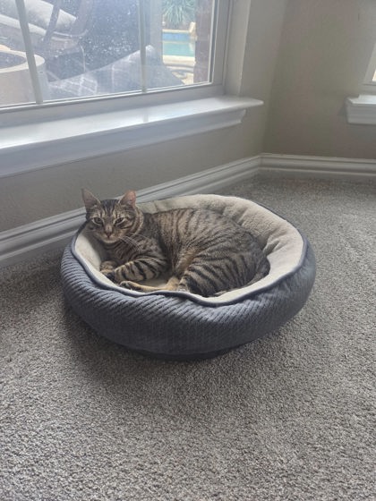 Meet Siggy - A Resilient Spirit with a Heart of GoldSiggy didn't come from a shelter - he showed up at his foster mom's door one day, as if he knew where he'd be safe. After some coaxing, she brought him inside and gave him the warmth and care he'd never known. A vet visit revealed that Siggy had survived a rough start - an old pelvic injury, likely from being hit by a car, had healed on its own. Because of it, his tail now has a special little twist, and his run has a charming wiggle. But don't let that fool you - Siggy is full of life.Now safe and warm, Siggy is adjusting to indoor life like a pro - with plenty of attention, treats, and cozy naps in soft beds. He loves making friends, especially with the resident cats, and is always up for a playful chase or a shared sunbeam. He's a foodie at heart, happily munching on his meals and never saying no to a snack. Every day he grows more comfortable and confident, showing just how ready he is to find a forever home of his own.Siggy is a survivor, a snuggler-in-training, and an all-around lovable guy looking for someone who sees past the scars to the incredibly sweet soul within. His journey may have started rough, but with the right home, his best chapters are yet to come.